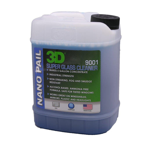 Properly dilute 3D Super Glass Cleaner 50:1 (2.5 oz. per 1 gallon) with water. Spray 3D Super Glass Cleaner directly onto the surface or spray it into a clean microfiber towel. Then wipe the surface down and use a separate clean microfiber towel to dry the surface.
