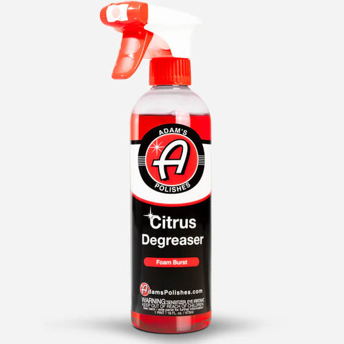 Adam’s Citrus Degreaser is an all-purpose cleaner and citrus-based degreaser utilizing Foam Burst™ technology. The Foam Burst™ technology provides a thick, rich lather that lubricates while it works and allows the chemistry to cling to the surface. This gives the formula more working time and the Foam Burst™ technology keeps the formula safe to use on all surfaces including delicate finishes. Adam’s Citrus Degreaser also contains corrosion inhibitors and leaves a thin water-film formation, called surface hydrophilization, which will prevent water-spotting and future grease adhesion – this provides a long-lasting effect and makes the surface easier to clean with each subsequent use!