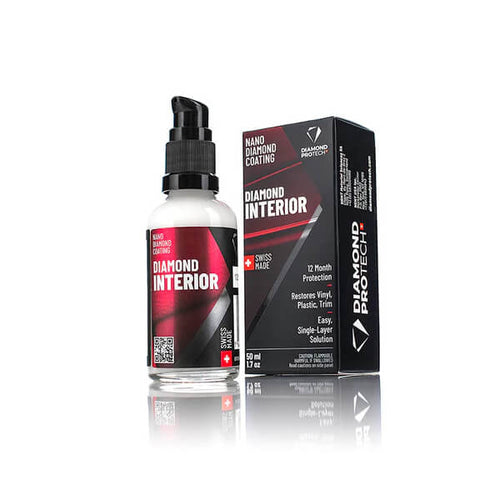 Diamond Interior is formulated for interior surfaces such as vinyl, plastic and trim. Diamond Interior will restore and enrich vehicle interior surfaces while providing up to 12 months of UV, water, and stain resistance.