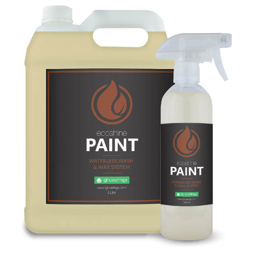 ecoshine paint, is a waterbased, zero VOC nanotechnology spray-on/ wipe off cleaner which safely removes surface contaminants & leaves your car absolutely spotless. It is designed to ‘lift’ dirt away while the powerful surfactants break down road grime. The added silane creates a smooth & protected finish with less dirt pick up.