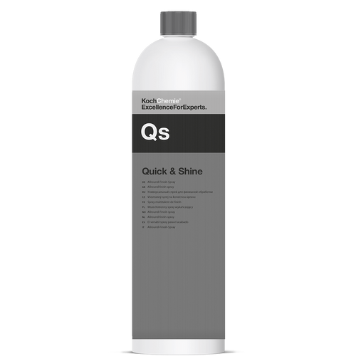 The all-round quick detailer for all smooth and painted surfaces (vehicle paintwork, painted wood, glass, plastic parts, consoles, painted furniture and musical instruments, stainless steel surfaces, etc.). Cleans, maintains and preserves in a single step. The surfaces receive a colour deepening and a streak-free, brilliant gloss. Finger marks and light dirt are removed quickly and easily. The treated parts are conserved and repel water and dirt and are protected from becoming dirty again quickly (lotus effect). Quick & Shine is quickly removed and is therefore easy to use. Previously applied veneers or waxes are preserved. Particularly suited for quick finishing of exhibited goods in showrooms or at fairs, as well as for quick valeting of vehicles. With Daimler approval.