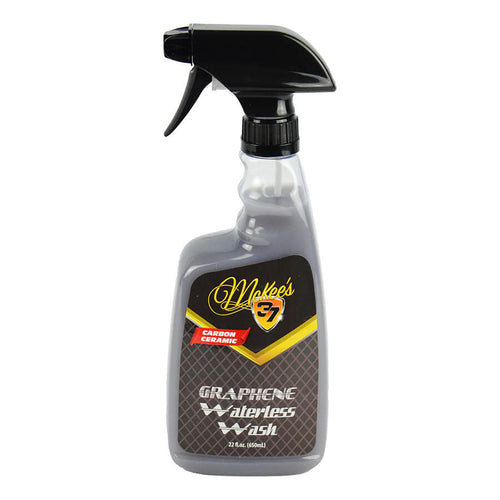 McKee’s 37 Graphene Waterless Wash is a spray-on, wipe-off cleaner and protectant that allows you to safely remove dirt and grime without using a hose or bucket. This graphene-rich formula increases gloss, slickness, and paint protection after every use, making it the ideal product to maintain a waxed, sealed, or ceramic coated vehicle. McKee’s 37 Graphene Waterless Wash is formulated using a blend of ultra-refined graphene-oxide ceramic resins that reinforce your existing paint protection while depositing a high-gloss barrier of graphene that causes water to bead up and roll off the surface, taking dirt and grime with it. McKee’s 37 Graphene Waterless Wash is safe for all exterior surfaces, and can even be used on interior rubber, vinyl, plastic, and leather surfaces. This spray-and-wipe formula provides a convenient way to wash your vehicle anywhere, any time.McKee's 37 Graphene Waterless Wash provides instant gratification. A quick spray and wipe reveals a dazzling, slick finish that will provide UV protection while repelling dirt, grime, and other airborne pollutants. Use this versatile formula on all exterior surfaces. Keep a bottle in your trunk to touch up your vehicle at a car show, or use it to add some shine to your car or truck before going on a hot date. Regardless of when and where you use it, Graphene Waterless Wash will make your vehicle look like you just spent hours washing and waxing it.