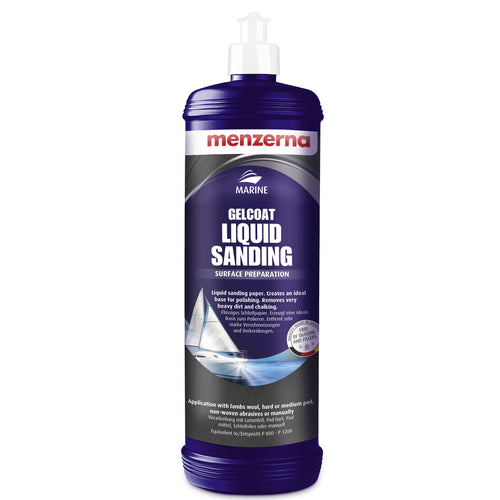 Liquid sandpaper aggressively sands badly scratched, dirty or chalky gelcoats without creating sanding dust. This liquid sanding suspension also establishes clear conditions at repair sites, resulting in ideal surface preparation for subsequent polishing.