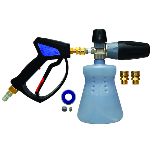 MTM Hydro’s 28 Special is offered in an easy, quick installation kit with all corrosion resistant fittings. The sleek, yet, robust Italian SG28 Easy Hold Spray Gun comes with professional brass and stainless fittings for a prolonged service life. The 28 Special offers you an upgraded version of the popular MTM Hydro Snub Kit without breaking the bank for a premium pressure washing experience. Paired with the world famous Italian PF22.2 Foam Cannon, you will have a price conscious auto detailing tool that will save you time and money while still putting on a foam show. This premium kit now fits a variety of residential pressure washers including Ryobi, AR, Greenworks, Karcher and Sunjoe.