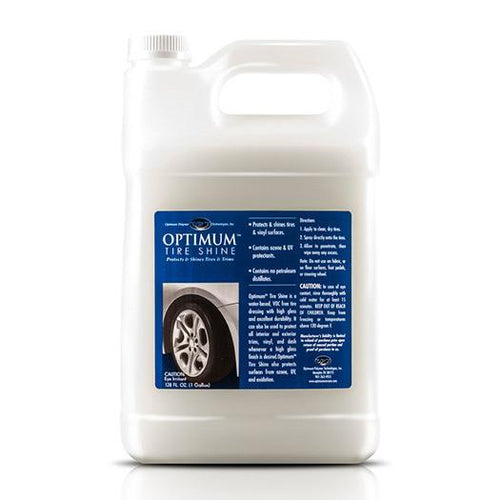 Optimum Tire Shine is a water based, solvent free, and VOC free formula. Tire Shine can be easily sprayed and has great cling to keep it on the tyres and prevent slinging issues.