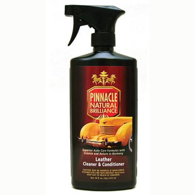 Rather than laboring for hours with a wipe on cleaner, then slaving over the conditioning application, we’ve formulated a high-tech emulsion-spray that delivers tough cleaning power, deposits penetrating conditioning oils, and armors the leather with high SPF UV protection. It’s easy, slick, and quick to apply. A single product that does it all means convenience and savings to you. Astoundingly, Pinnacle Leather Cleaner & Conditioner yields virtually the identical outcome as the traditional two-step process.