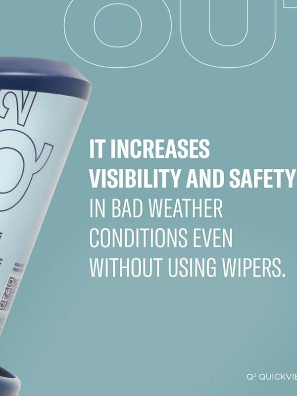 The ultra-slick coat of Q² QuickView ensures outstanding repellency of both water and dirt. It increases visibility and safety in bad weather conditions even without using wipers. Keep your windshield crystal clear!