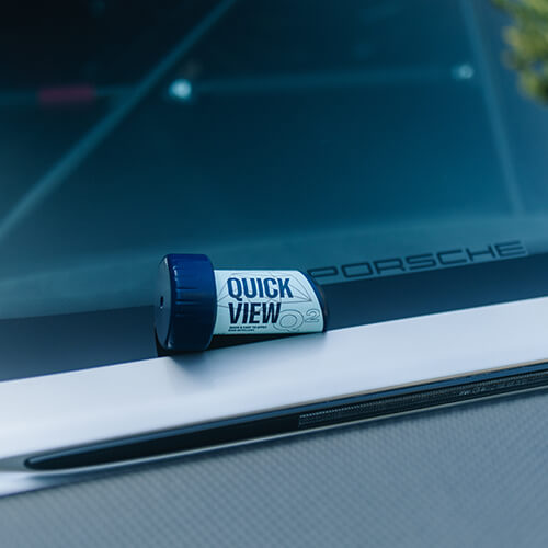 The ultra-slick coat of Q² QuickView ensures outstanding repellency to both water and dirt. It enhances visibility and safety in adverse weather conditions, even without using wipers. Keep your windshield crystal clear!