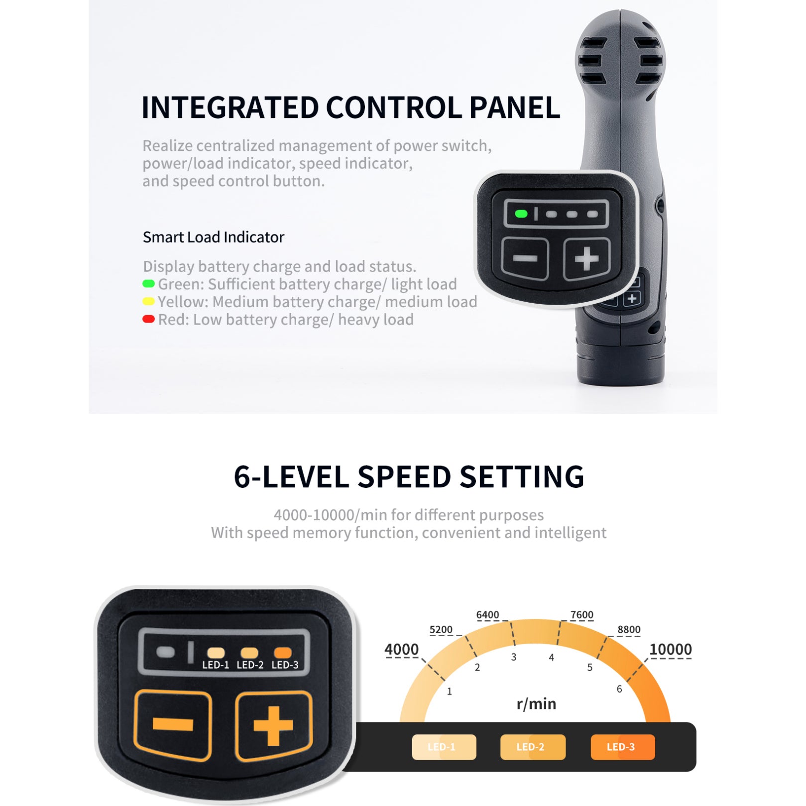 A durable brushless motor provides strong, stable performance while reducing maintenance over the long term. The six-speed control range (4000 to 10000 RPM) allows you to tailor cut and finesse to the task at hand, and the built-in speed memory returns to your last setting for workflow efficiency. The tool’s quiet operation supports a more comfortable working environment, and the slim, lightweight form factor reduces strain during extended use.