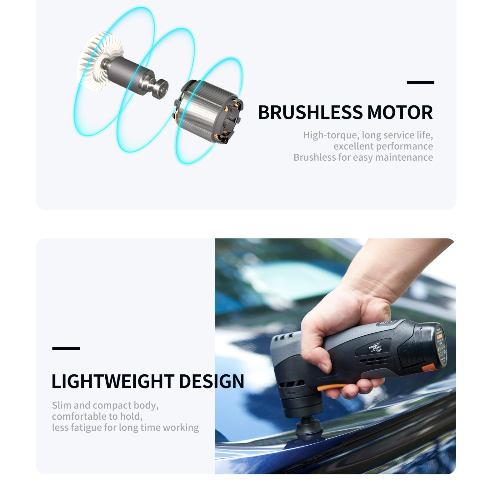 The ShineMate EB201A is engineered for technicians who need consistent, high-quality paint correction without the constraints of a power cord. Its 5 mm orbit delivers balanced material removal and refined finishing capability, making it well suited for both correction and prep work.