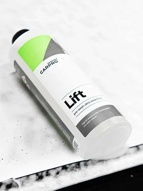 CARPRO Lift is a highly concentrated pre-wash foaming agent designed to dissolve and lift away a substantial amount of dirt and grime in a completely touch-less manner, preparing the surface for the application of vehicle shampoo.