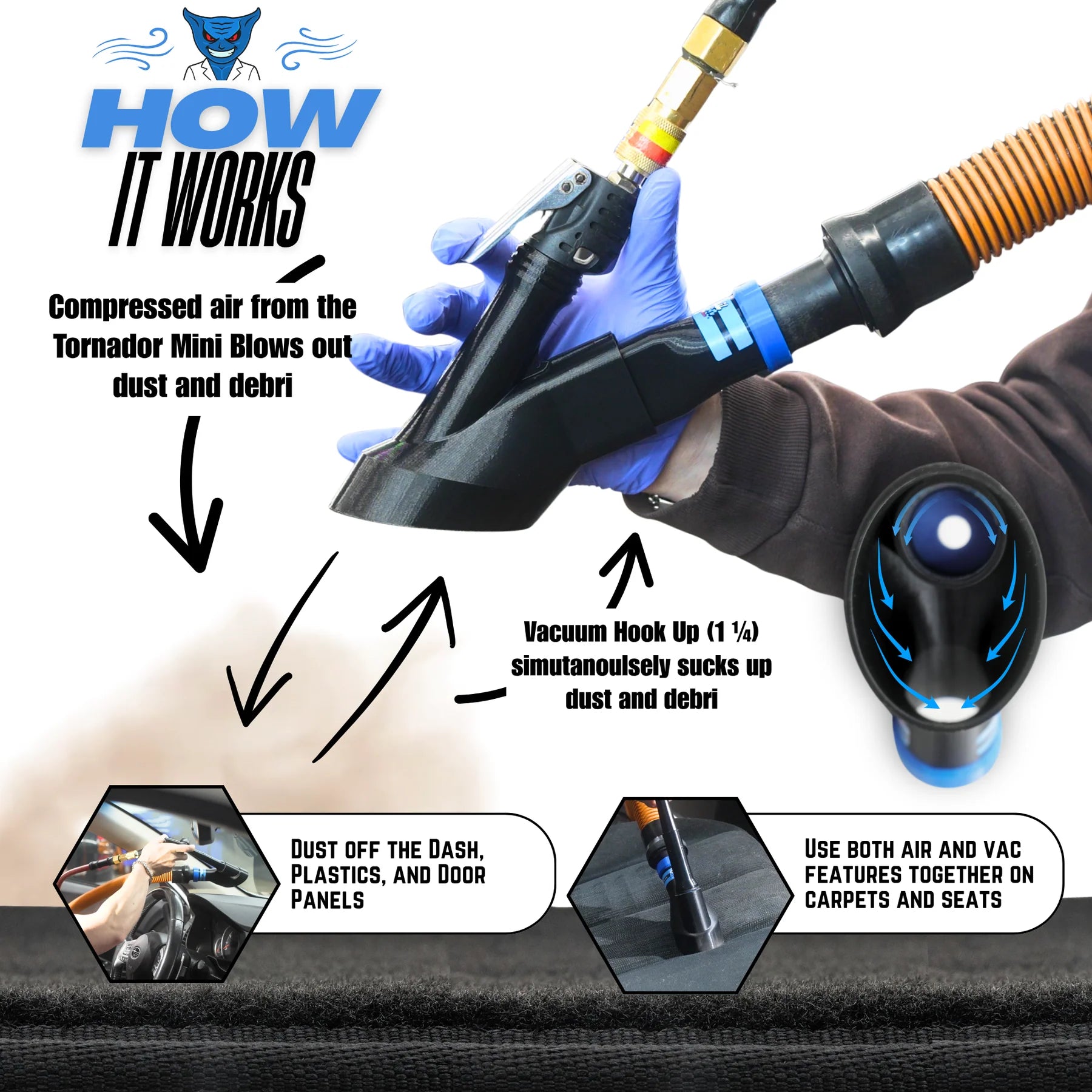 - 2-in-1 Interior Auto Cleaning Tool: Innovative designed attachment for the powerful Air Blaster Mini, combining both air and vacuum functionality into one seamless tool.