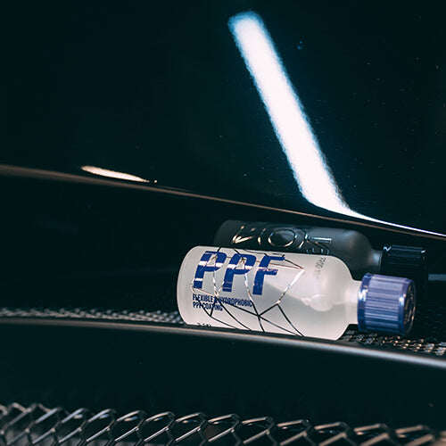 The unique composition of Q² PPF EVO, featuring fluoro-modified polysilazanes, makes it the most durable and hydrophobic coating for PPF available. It remains very slick and easy to apply. It can be applied on both glossy or matte film, as well as on any vinyl wrap surface. It creates a slick, protective layer without compromising the self-healing abilities of the film.