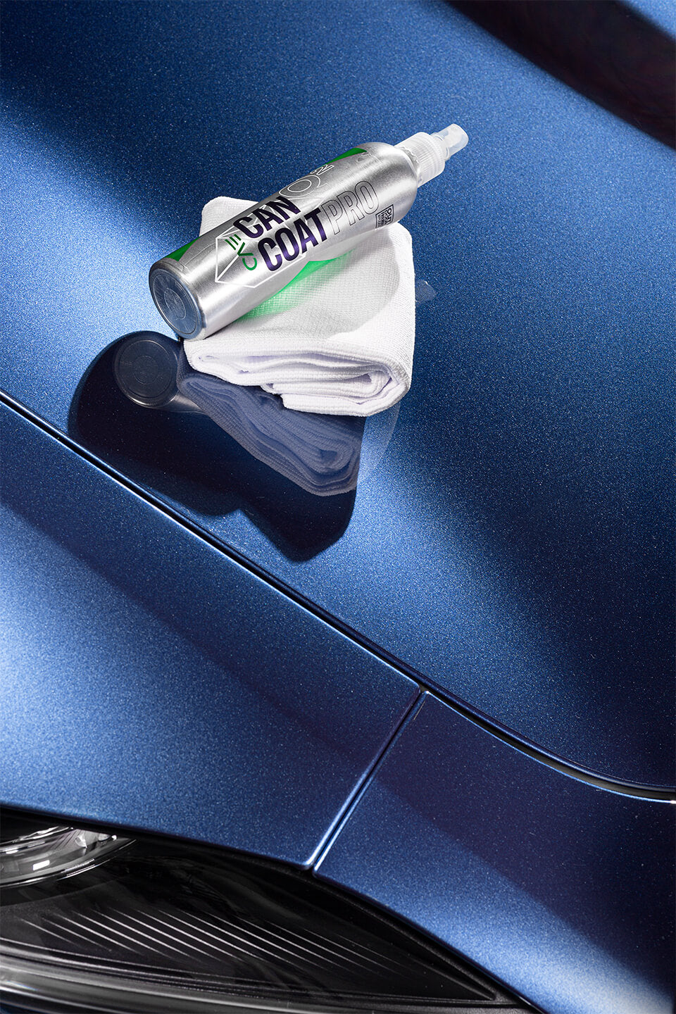 Q² CanCoat EVO is the most versatile ceramic coating. It might be applied on paint, trim, rims, metal, carbon fibre or PPF/vinyl. It is both a stand-alone product as well as a topcoat. TIP: Never spray in the direction of the vehicle and mind working in an area with low air movement to avoid overspray. Work in small sections to avoid streaks.