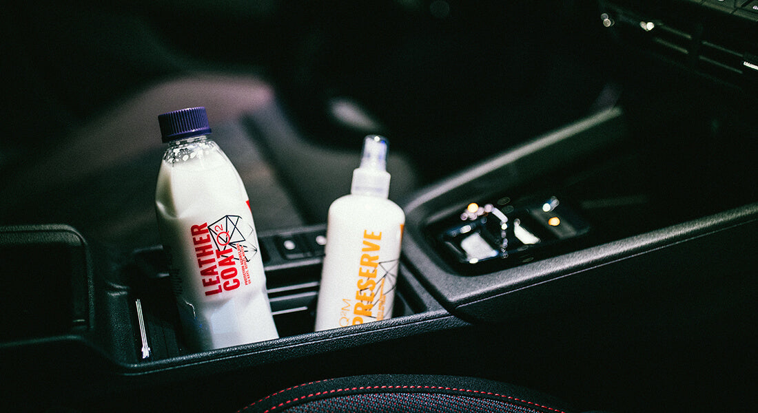 Leather Shield is a full-on leather ceramic coating, whereas Leather Coat is a water-based protection spray that's easy to use and can be used to maintain and top up Leather Shield.