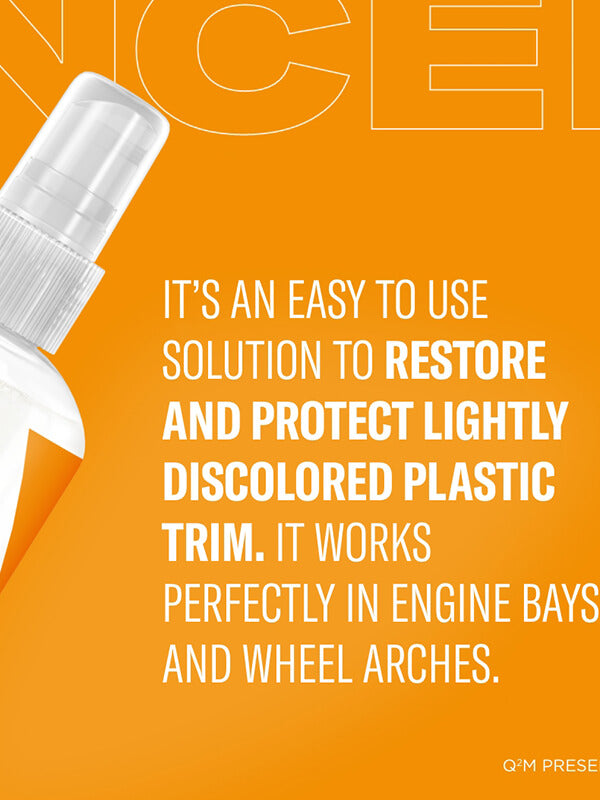 Q²M Preserve is a simple and quick way to restore lightly faded trim parts and preserve all others for a long time. It offers excellent dirt repellency, anti-static properties, and UV protection combined in just one product.