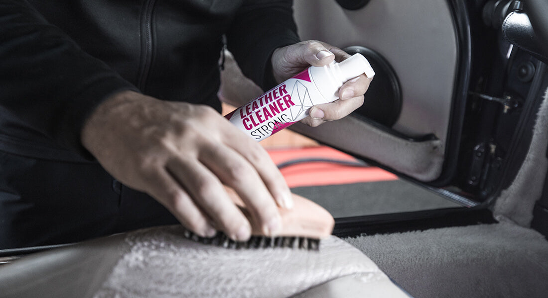 Tip: Don’t hesitate to use water in conjunction with the Q²M LeatherCleaner Strong foam. This aids in distributing the product and generating more foam. The included Q²M LeatherBrush effectively agitates the cleaner, removing dirt from the material's structure.