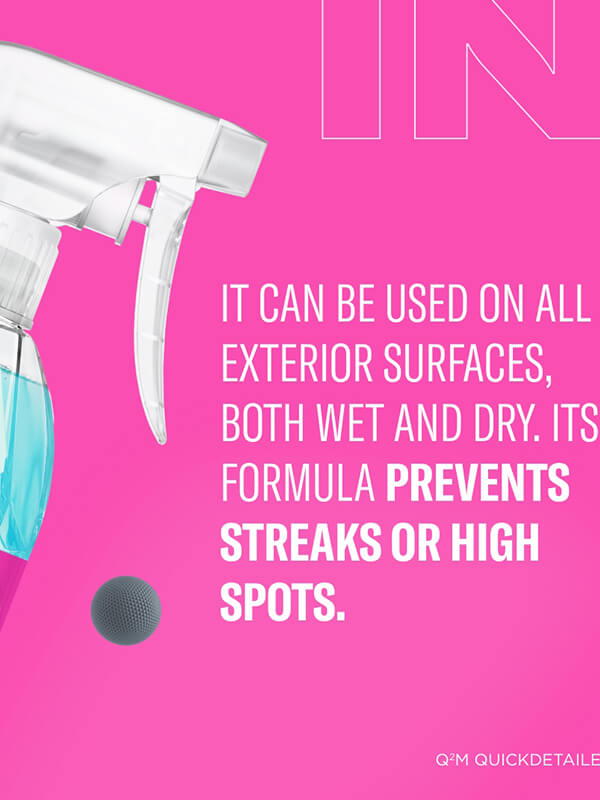 Q²M QuickDetailer is the answer to the needs of detailing enthusiasts searching for the most versatile daily quick-detailing product. It enhances gloss and adds great slickness while removing spots, streaks, or fingerprints. It's completely safe to use on coatings as well as on traditional waxes.
