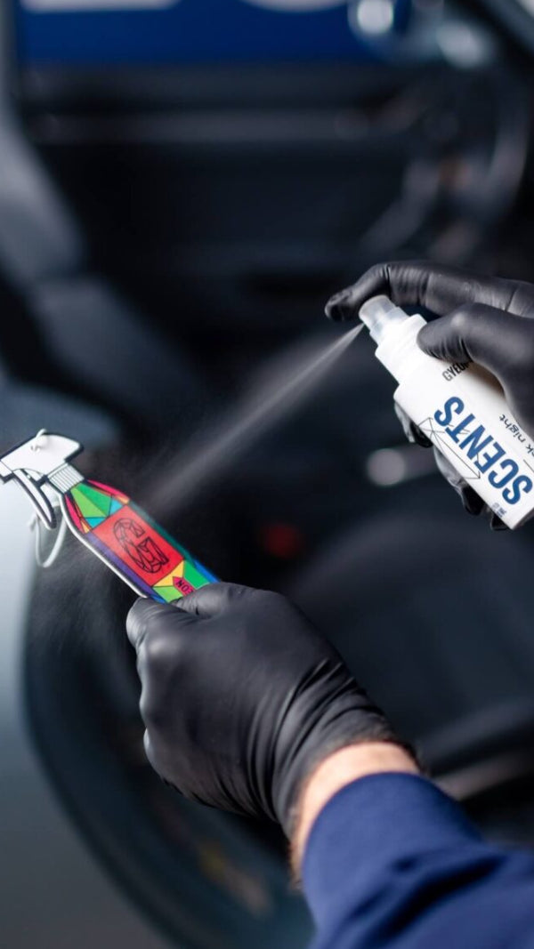 Each scent is sold as a bundle with three unique hangers, allowing you to choose your favorite GYEON design or use the fragrance in more than one car. The scents can also be applied by spraying directly onto the floor mats.