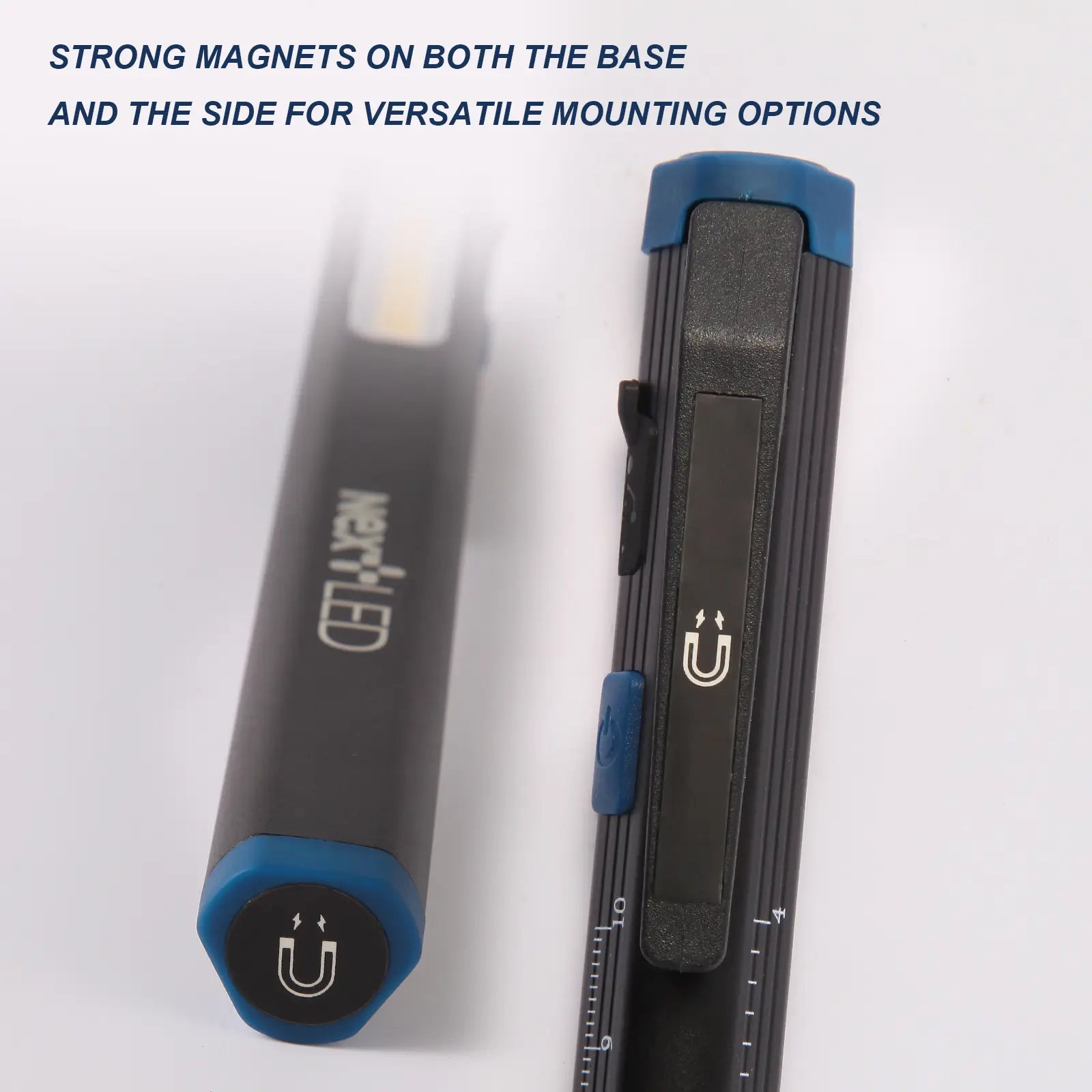 [HANDS FREE CONVENIENCE] - Designed with 2 integrated magnets and a sturdy pocket clip, this pen flashlight rechargeable easily mounts to metallic surfaces or clips to your shirt—keeping your hands free while using it as a paint light, swirl finder light, or work light.