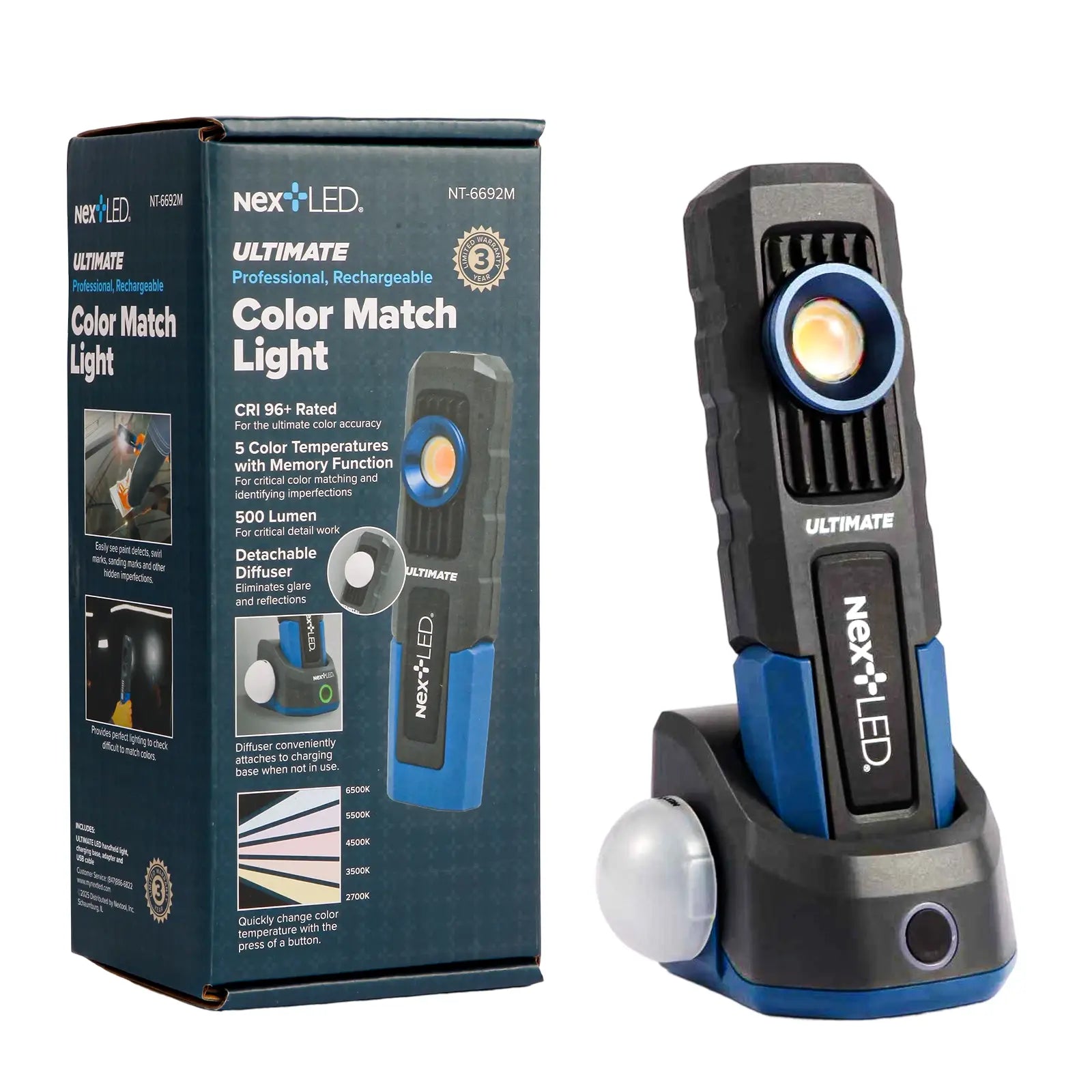 The NextLED Ultimate Series is built for professionals who demand more than just brightness. With CRI 96+ true color accuracy, 5 adjustable color temperatures, and shop-grade durability, it delivers performance trusted by body shops and detailers worldwide. Every component is engineered for daily use—from its magnetic charging base to its glare-reducing diffuser—and backed by a free 3-year warranty. You’re not paying more for the name. You’re paying for precision, reliability, and results that cheaper lights can’t match.