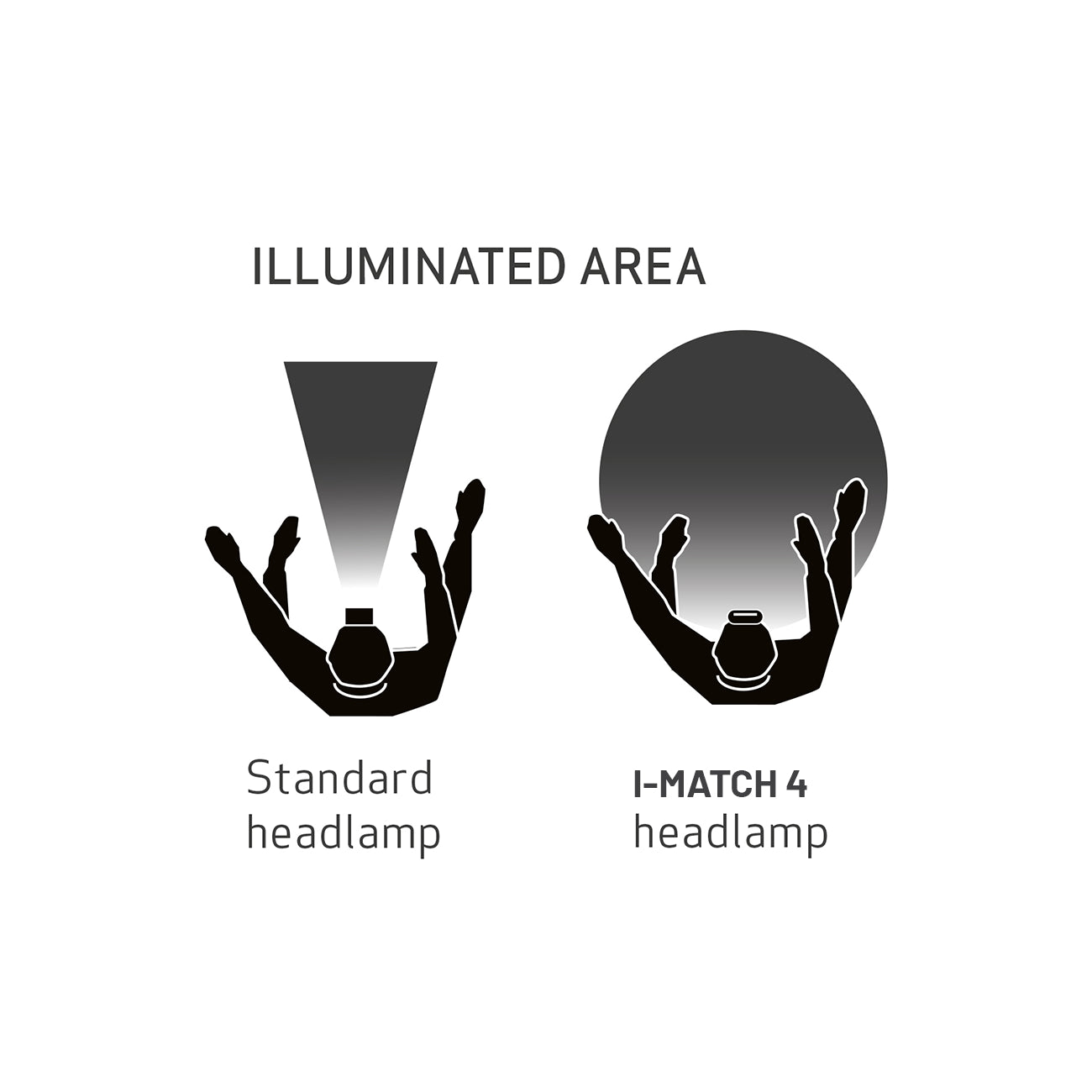 The headlamp provides 250 lumen with a uniform light that illuminates your entire field of view. Compared to the previous model, I-MATCH 4 has an improved user interface for CCT control and sensor activation. In sensor mode, you can easily see when the sensor is activated and turn the light on/off by waving your hand in front of the lamp.